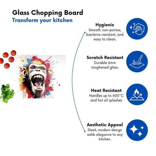 Coloured Splashart Crazy Monkey Face Glass Chopping Board