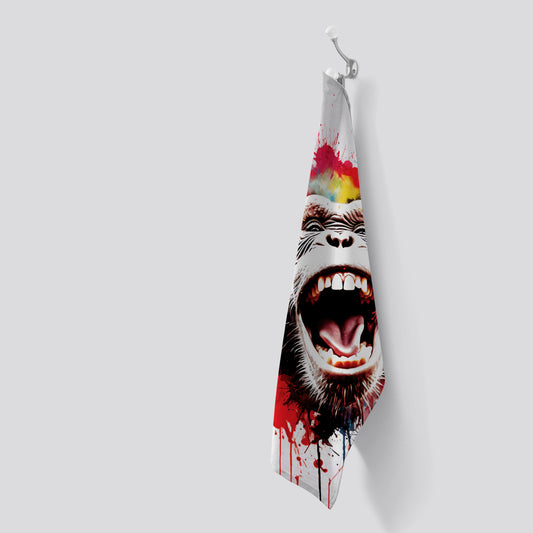 Coloured Splashart Crazy Monkey Face Tea Towel