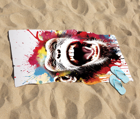 Coloured Splashart Crazy Monkey Face Beach Towel