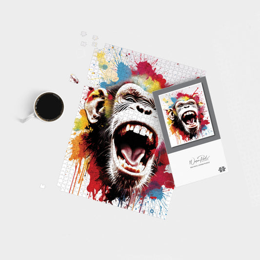 Coloured Splashart Crazy Monkey Face Jigsaw Puzzle