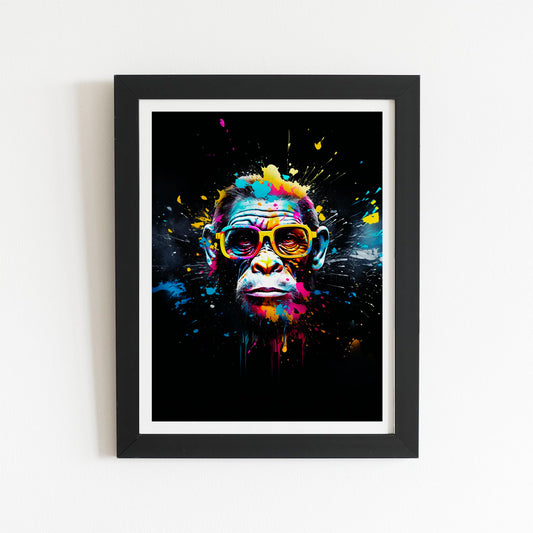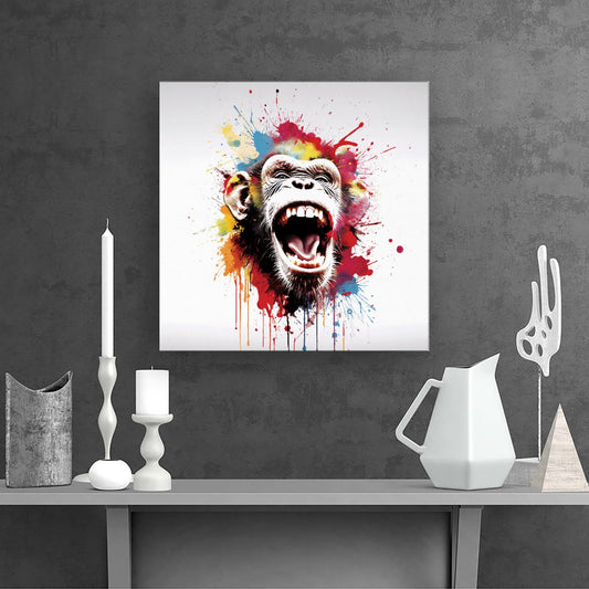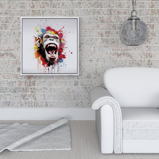 Coloured Splashart Crazy Monkey Face Framed Canvas