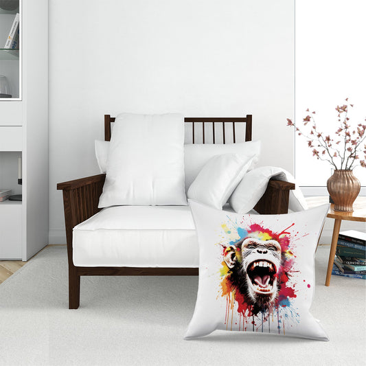 Coloured Splashart Crazy Monkey Face Outdoor Cushion