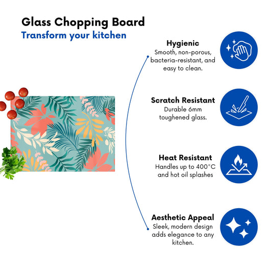 Abstract Bright Colorful Tropical Leaves Glass Chopping Board