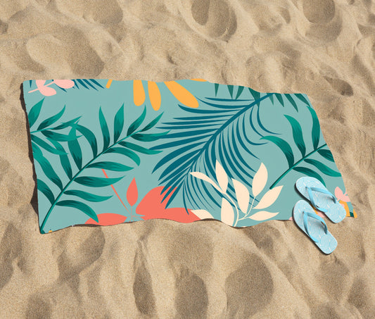 Abstract Bright Colorful Tropical Leaves Beach Towel