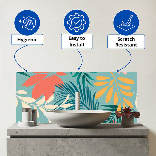 Abstract Bright Colorful Tropical Leaves Glass Bathroom Splashback