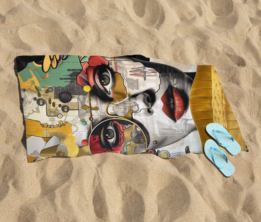 Abstract Face Behind Sofa Beach Towel