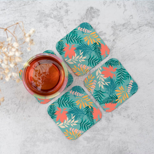 Abstract Bright Colorful Tropical Leaves Coasters