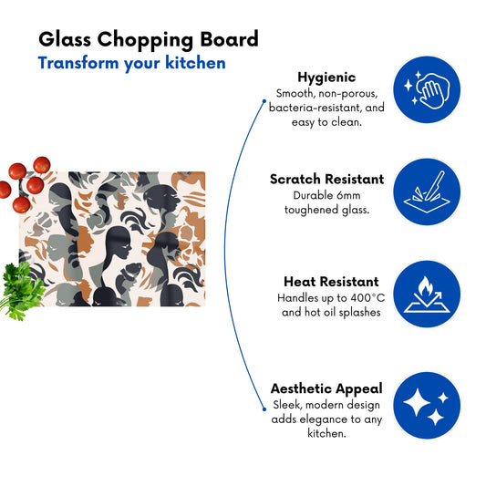 Abstract Grey Brown Silhouette Glass Chopping Board