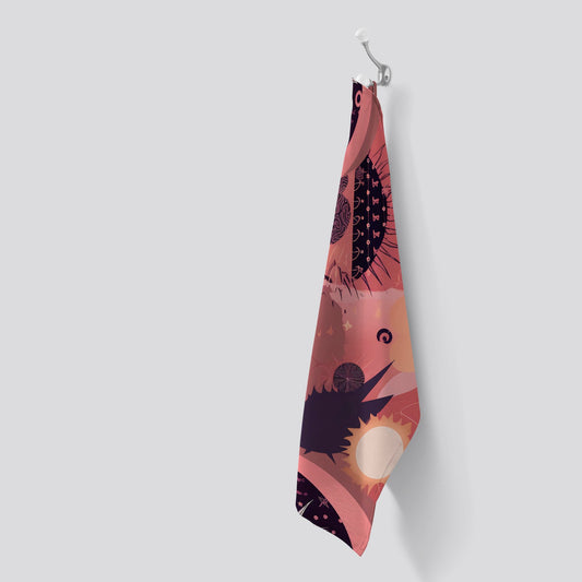 Abstract Red Pink Pattern Tea Towel