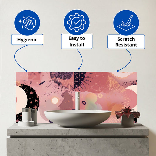 Abstract Red Pink Pattern Glass Bathroom Splashback
