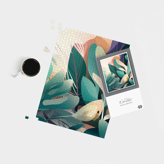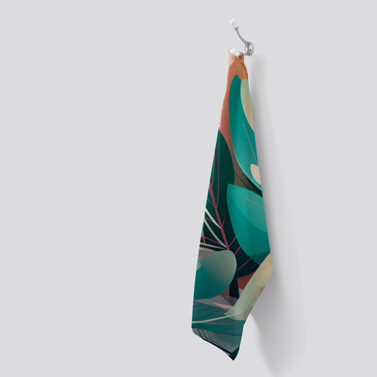 Abstract Tropical Leaves Glass Bathroom Splashback
