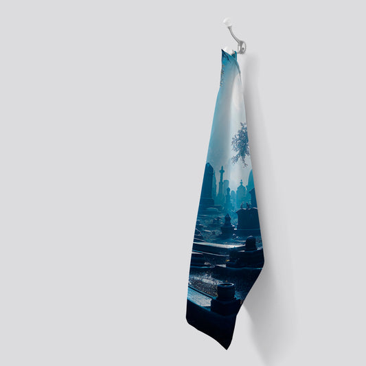 A Breathtaking Scene Of A Moonlit Graveyard Tea Towel