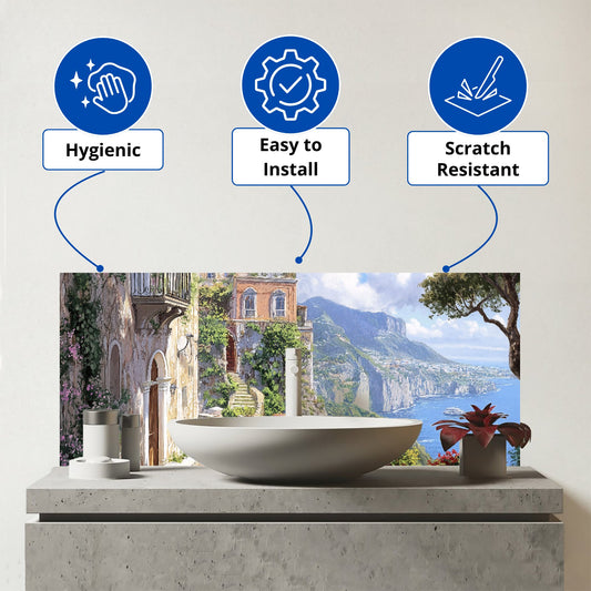 A Beautiful Walk In Sorrento Glass Bathroom Splashback