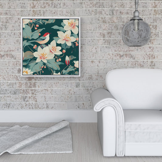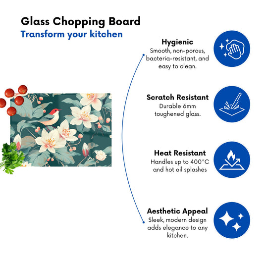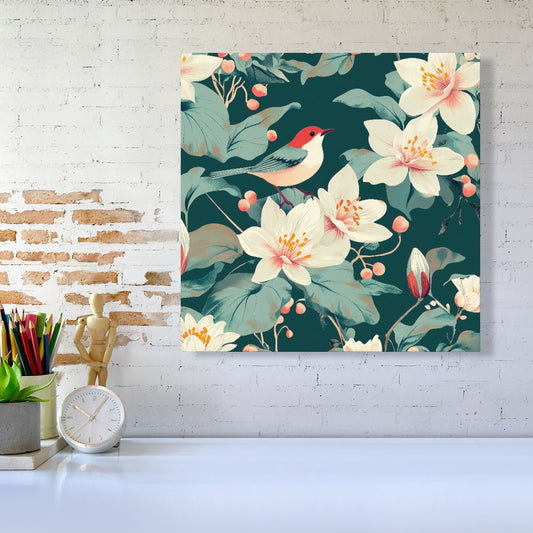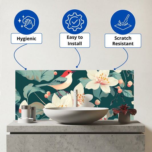 A Bird Amongst The Lillies Glass Bathroom Splashback