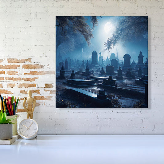 A Breathtaking Scene Of A Moonlit Graveyard Canvas