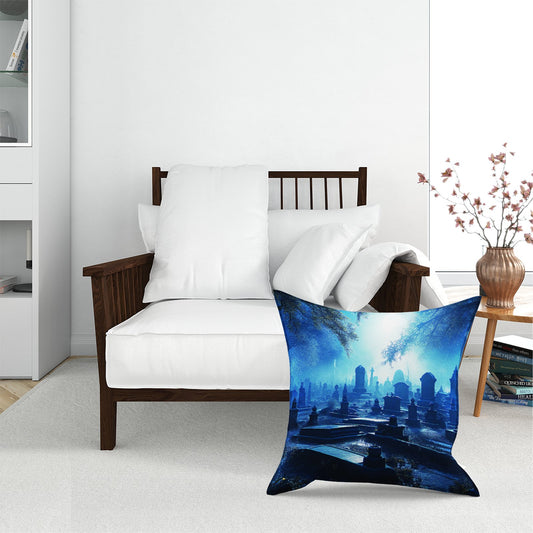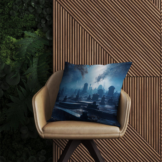 A Breathtaking Scene Of A Moonlit Graveyard Cushions