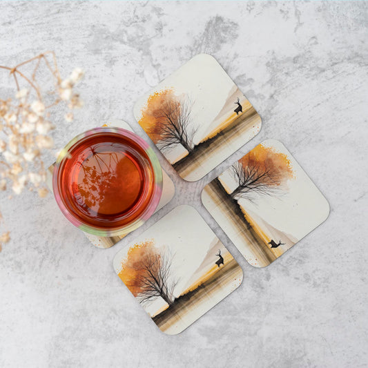Autumn Landscape Stag Watercolour Coasters