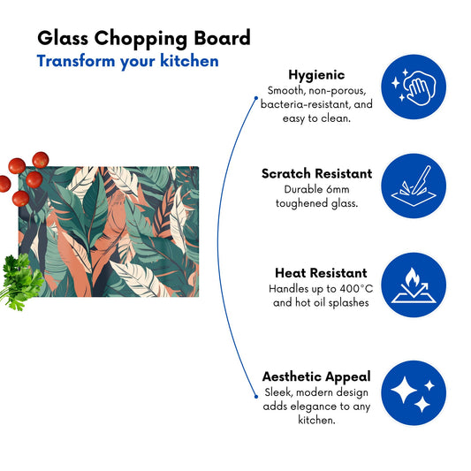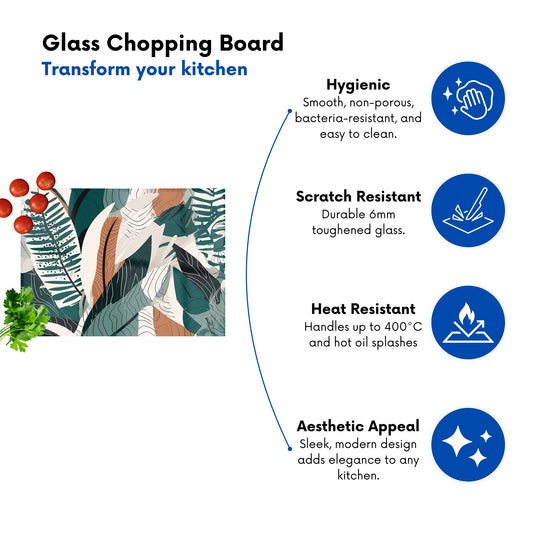 Autumn Tropical Leaves Green Brown Glass Chopping Board