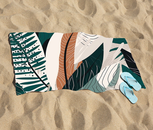 Autumn Tropical Leaves Green Brown Beach Shopper Tote Bag
