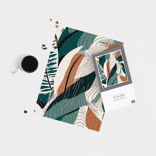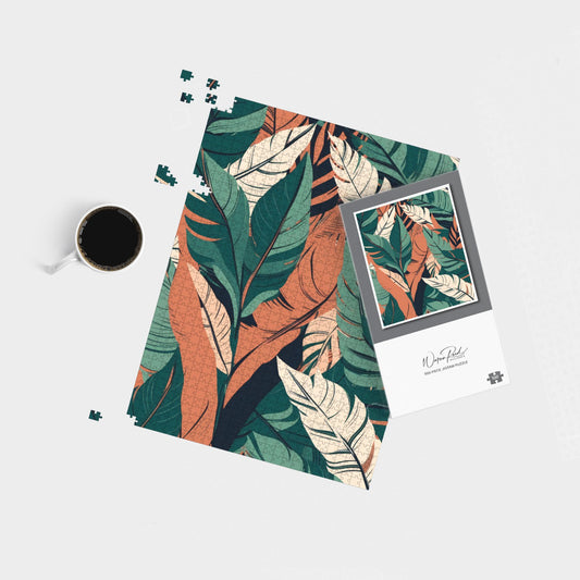 Autumn Tropical Leaves Green Brown Jigsaw Puzzle
