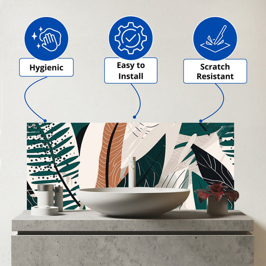 Autumn Tropical Leaves Green Brown Glass Bathroom Splashback