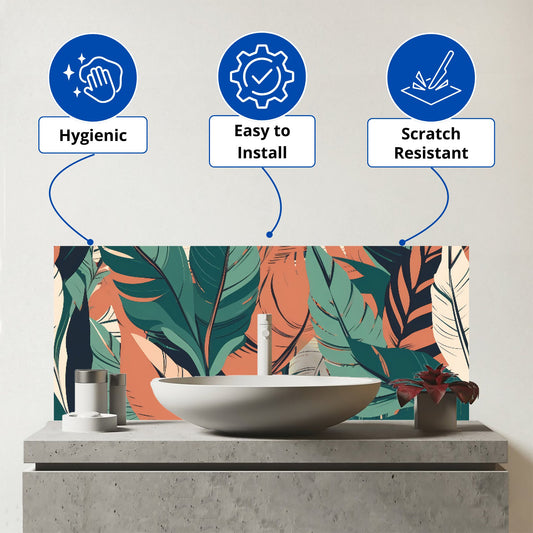 Autumn Tropical Leaves Glass Bathroom Splashback