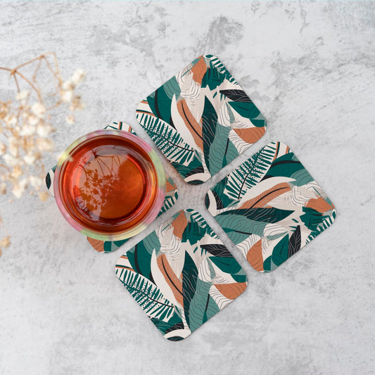 Autumn Tropical Leaves Green Brown Kitchen Splashback