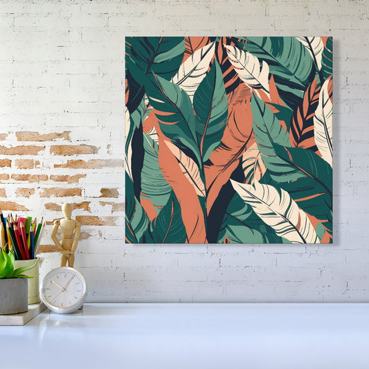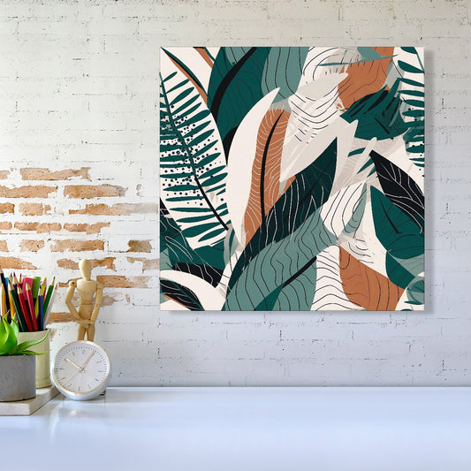 Autumn Tropical Leaves Green Brown Framed Canvas
