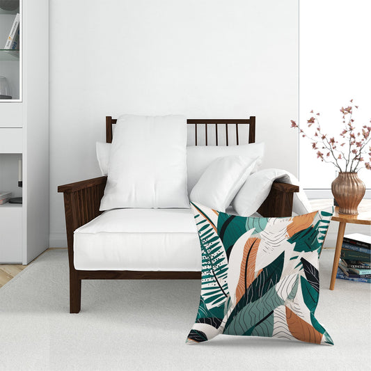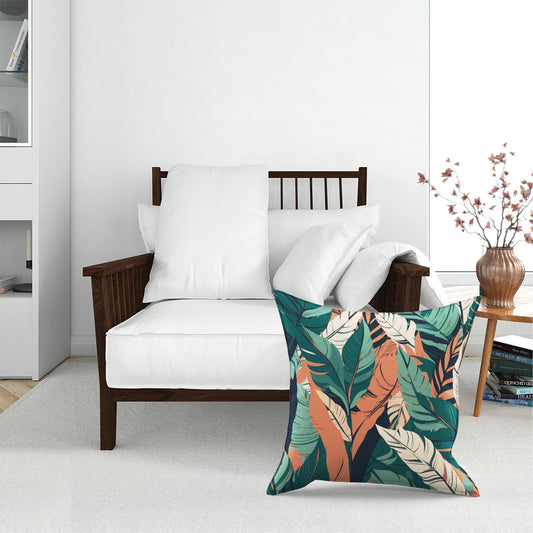 Autumn Tropical Leaves Green Brown Outdoor Cushion