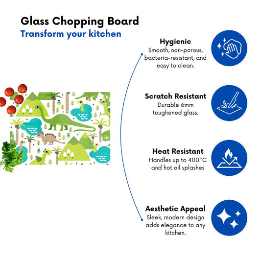 Baby Dinosaur Print Glass Chopping Board