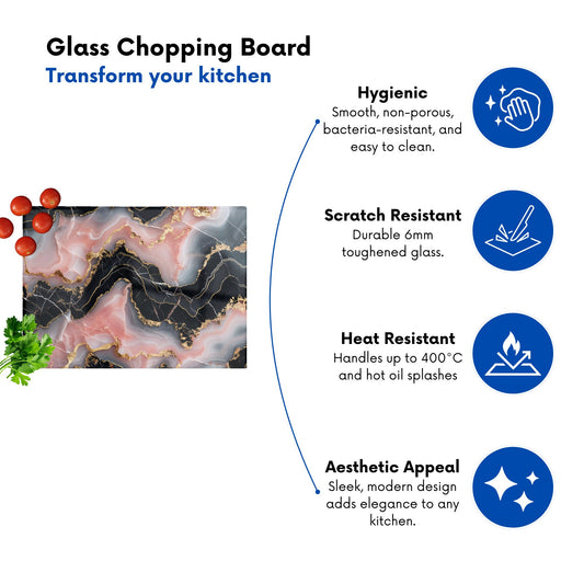 Baby Pink And Black Marble Effect Chopping Board