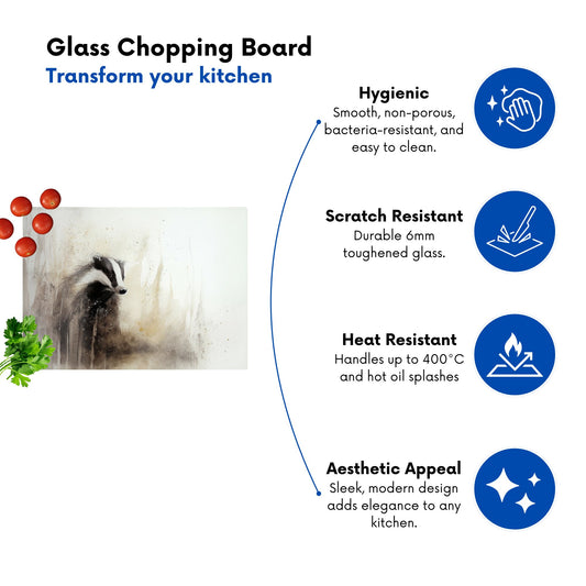 Badger Watercolour Glass Chopping Board