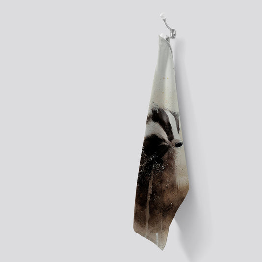 Badger Watercolour Tea Towel