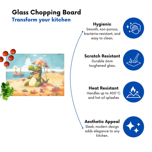 A Crocodile On A Beach Holiday Glass Chopping Board