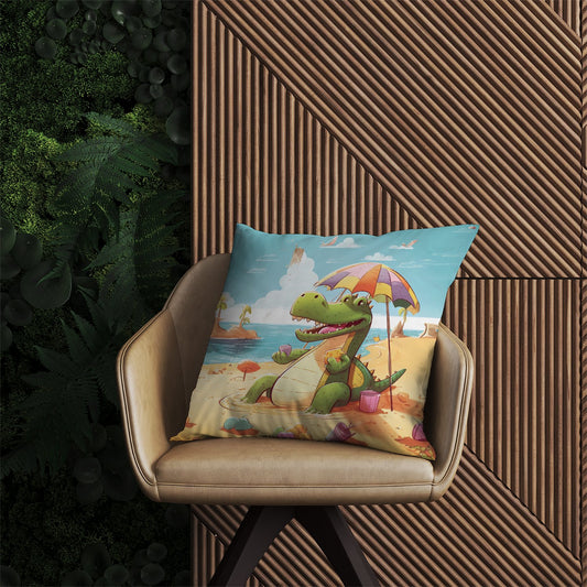 A Crocodile On A Beach Holiday Outdoor Cushion