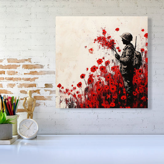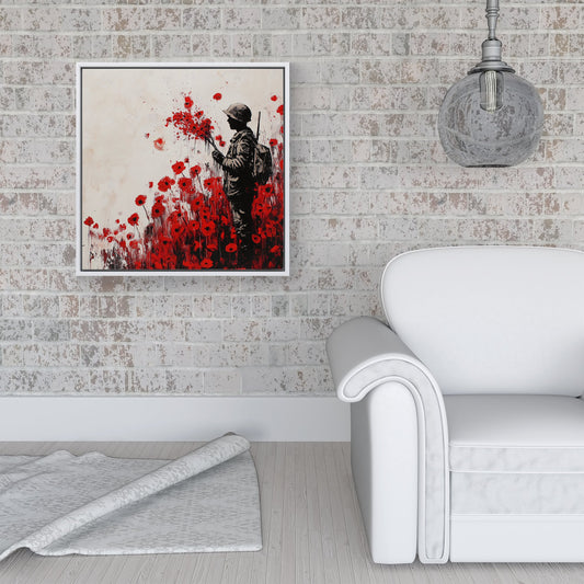Banksy |Nspired Soldier And Poppies Framed Canvas