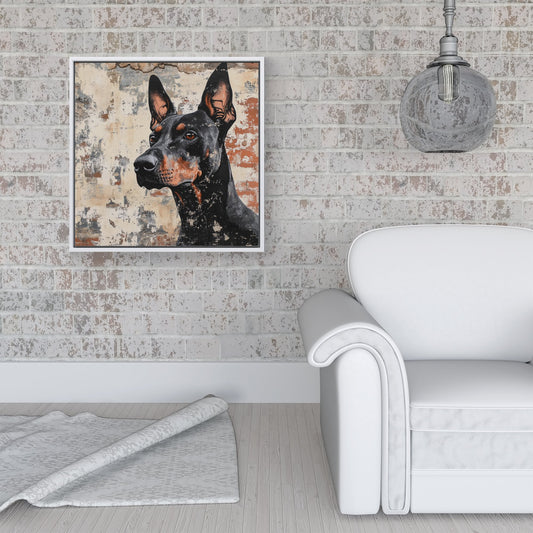 Banksy Inspired Thoughtful Doberman Framed Canvas