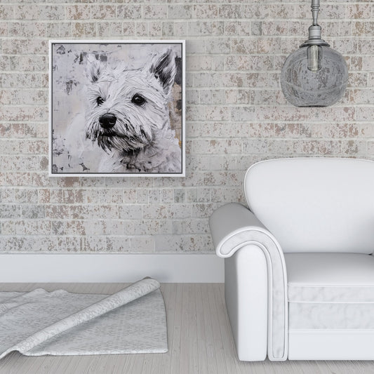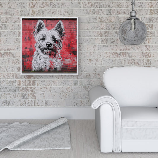 Banksy Inspired Thoughtful West Highland Terrier Framed Canvas