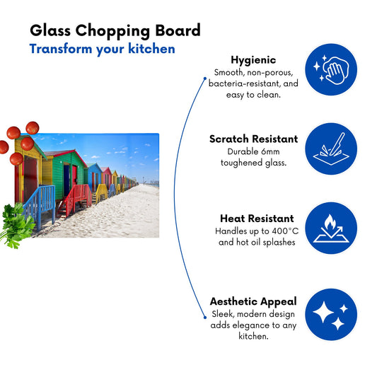 Beach Huts Cape Town South Africa Glass Chopping Board