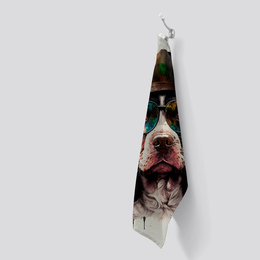 Springer Spaniel Dog With Glasses Splashart Tea Towel