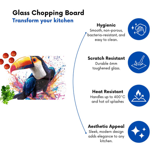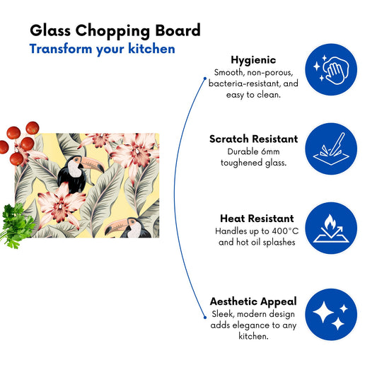 Toucans Orchids And Palm Leaves Glass Chopping Board
