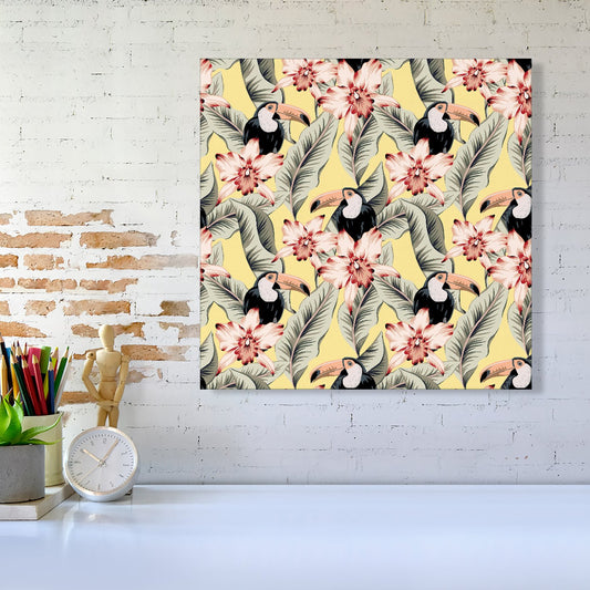Toucans, Orchids And Palm Leaves Framed Canvas