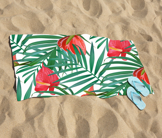 Tropical Flowers And Palm Leaves Beach Shopper Tote Bag