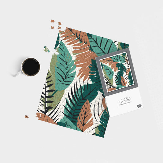 Tropical Floral Leaves Green Brown Jigsaw Puzzle