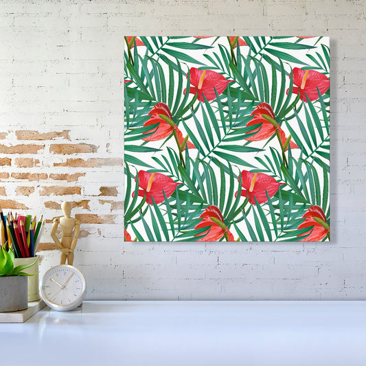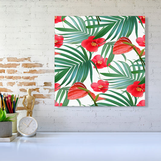 Tropical Flowers And Palm Leaves Hawaiian Canvas