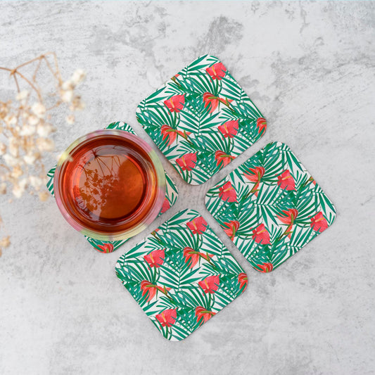 Tropical Flowers And Palm Leaves Hawaiian Coasters