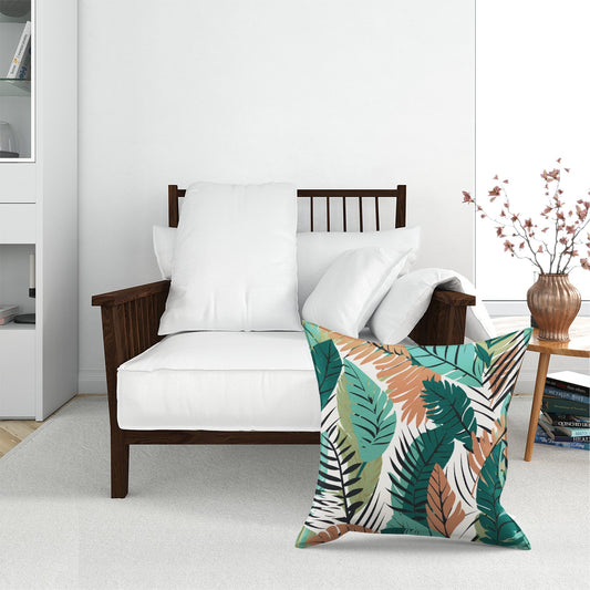 Tropical Floral Leaves Green Brown Outdoor Cushion