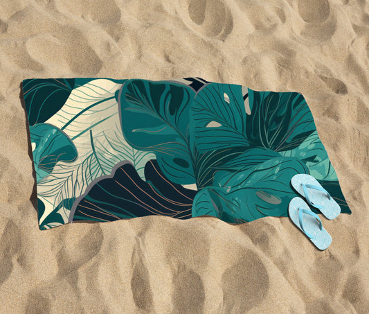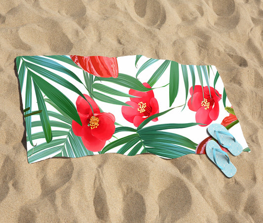 Tropical Flowers, Palm Leaves Hawaiian Beach Towel