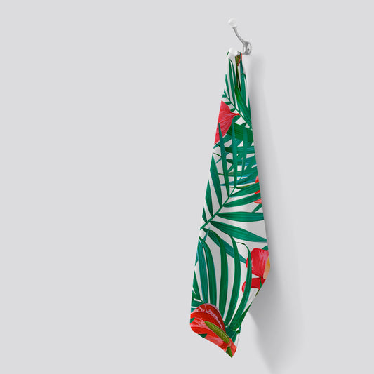 Tropical Flowers And Palm Leaves Hawaiian Tea Towel