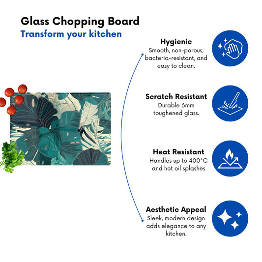 Tropical Jungle Leaf Pattern Glass Chopping Board